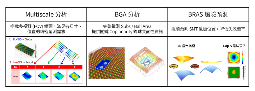 ☆ 錫球共面性(Coplanarity)、熱膨脹係數(CTE)、BRAS風險預測;近年來成為客戶指名TDM設備的關鍵原因。