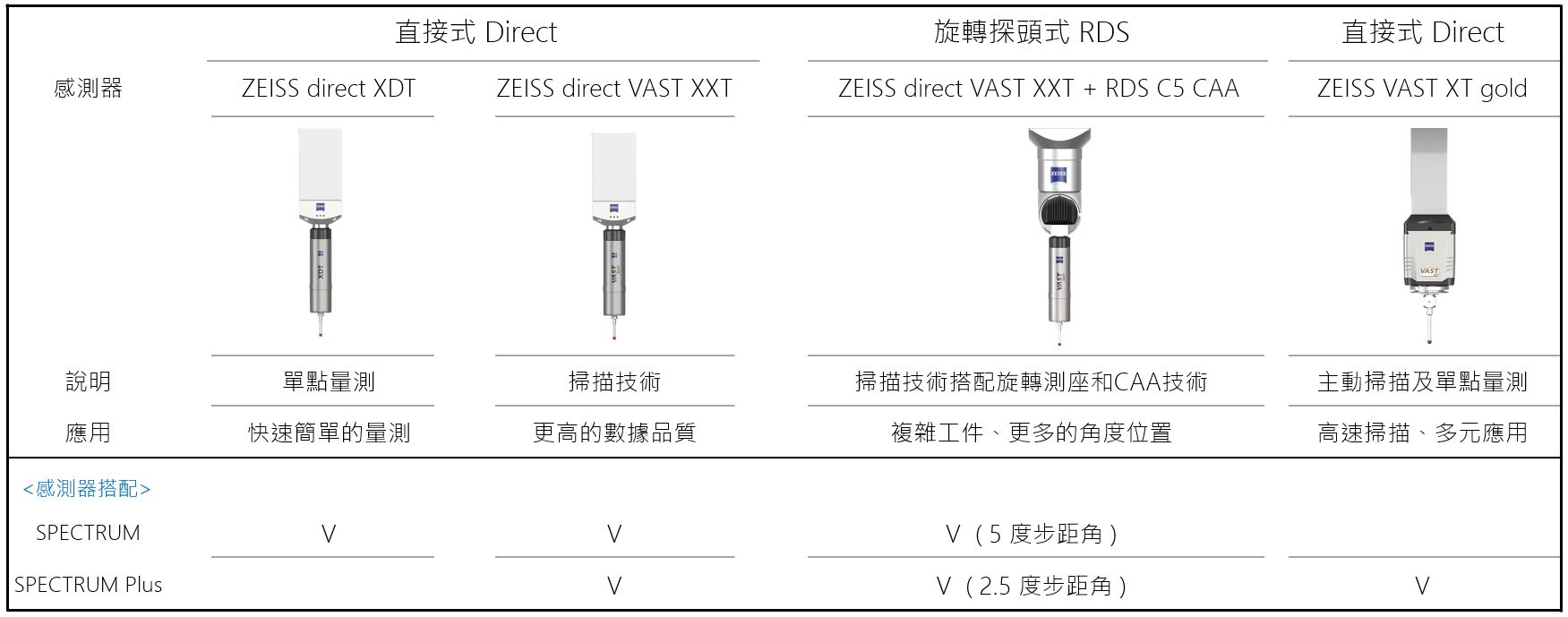 SPECTRUM包括各种接触式传感器。VAST XXT扫描功能强调效率及更可靠的量测:能迅速检测大量对象,并消除单点量测带来的误差,提供更高的可靠性与重复性。