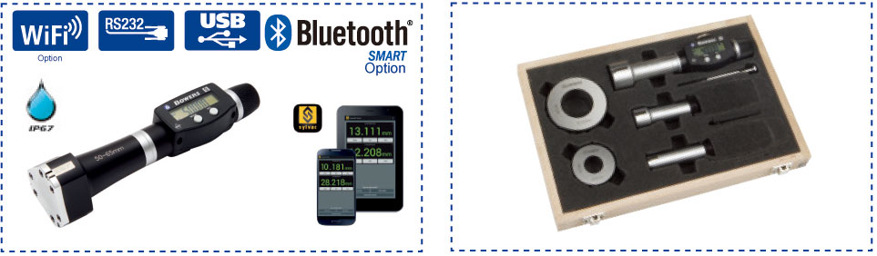 提供新的人體工程學設計–包括更大,更清晰LCD顯示器-IP67防護電子設備,可選配內置藍牙功能,與其他設備直接進行無線藍芽傳輸:允許雙向通信提供用於數據輸出和存儲的靈活性。也可搭配特殊測頭,滿足用戶在測量螺紋、花鍵、槽、溝槽、深孔等特殊內徑量測應用。